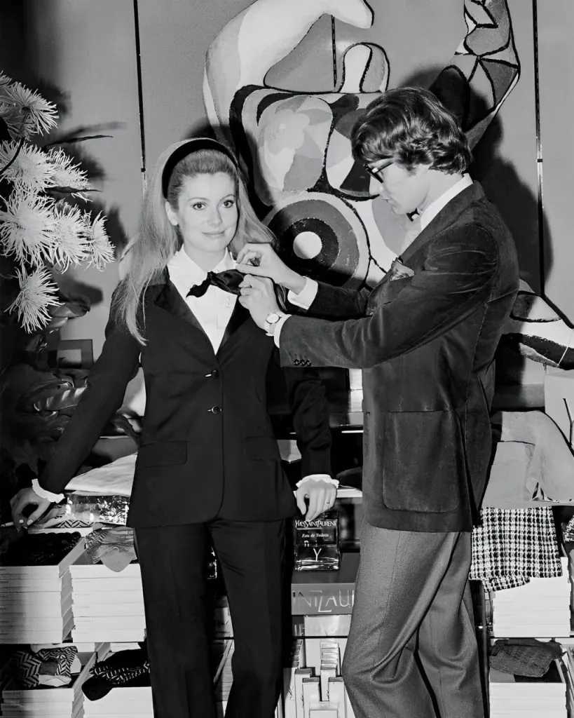 Ông đã sử dụng cùng các nguyên tắc thiết kế nhưng đã điều chỉnh chúng phù hợp với cơ thể phụ nữ, tạo ra bộ suit đầu tiên dành cho phái đẹp. “Một người phụ nữ mặc suit không hề làm mất đi tính nữ của nàng”, Saint Laurent chia sẻ. “Một đường cắt sắc nét, tinh tế sẽ tôn lên sự nữ tính, quyến rũ và vẻ bí ẩn của cô ấy”.